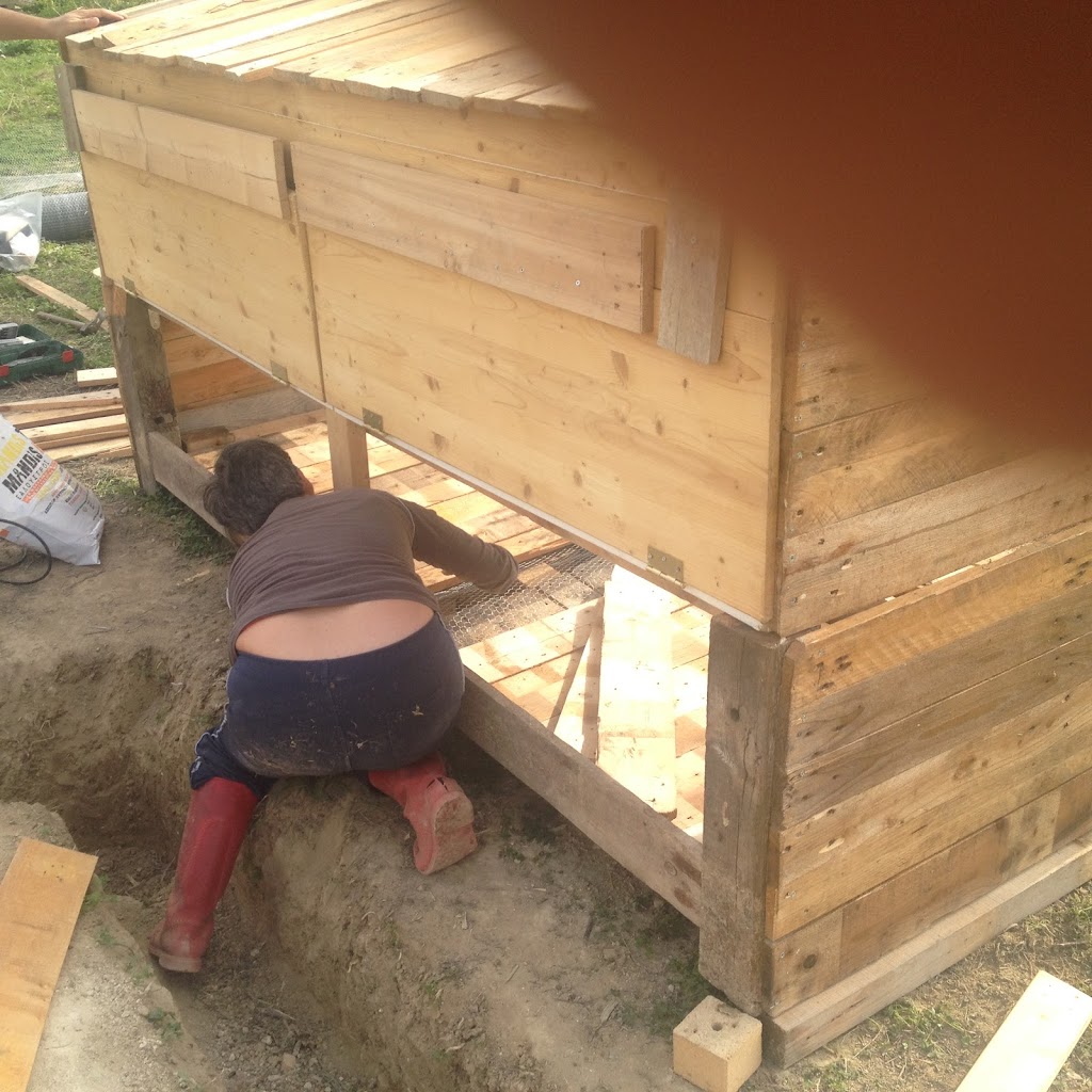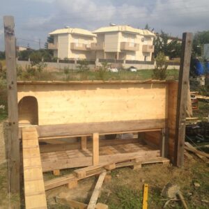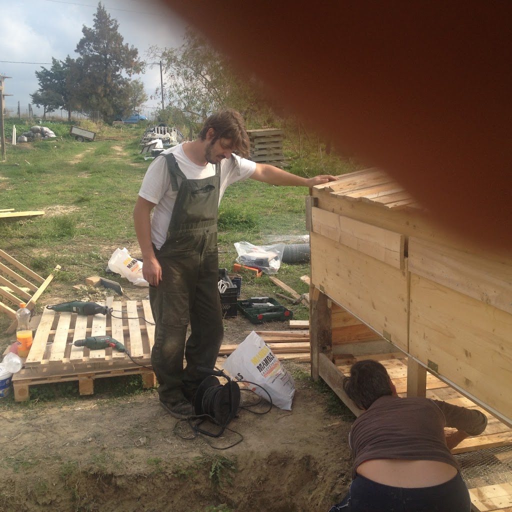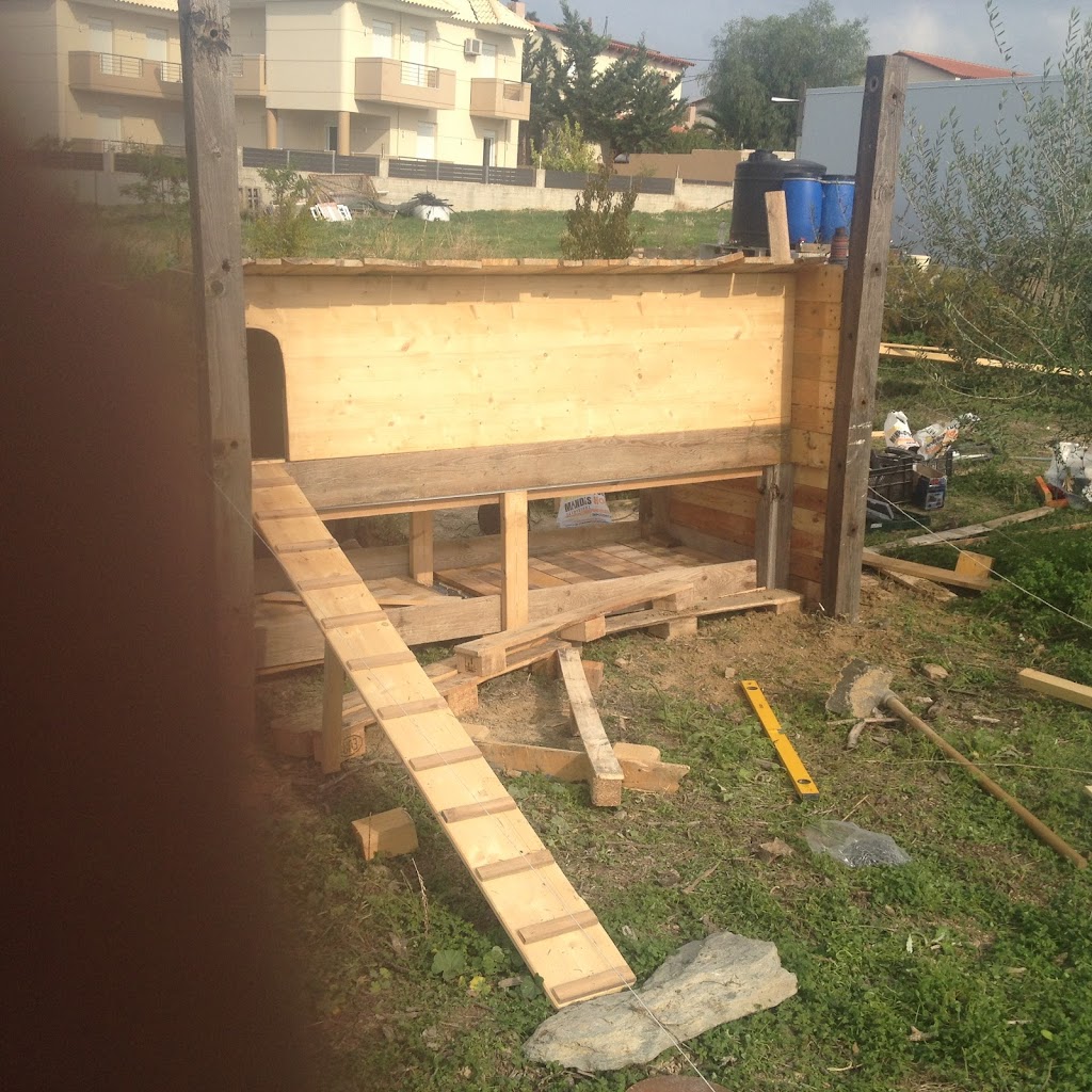 κυρίως παλέτες, ένα σπίτι για τις κότες, τα κοκοράκια και για τα ορτυκάκια μας.